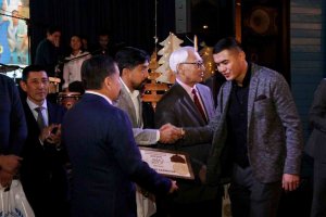 В этот день состоялось множество радостных событий, но прежде чем были вручены первые награды, ко всем собравшимся обратился президент футбольного клуба-юбиляра Аскар Салымбеков.