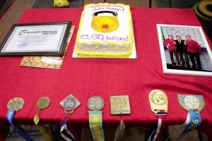 На этот раз Александр Петров, тщательно подготовившись, смог успешно пройти марафон за 1 час 33 минуты и по подсчетам сумел поднять за это время в сумме 32 тонны. Его поздравили все присутствующие, в том числе и семья, которая осталась очень довольна преподнесенным подарком в виде торта с изображением гири. Такой сладкий презент был вручен федерацией.