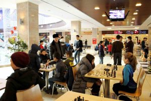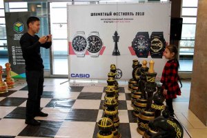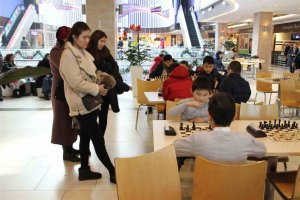 Стоит отметить, что в этот день любители шахмат могли сыграть партию и посмотреть за финальными баталиями ведущих спортсменов. Также рядом со столиком были установлены большие деревянные шахматы.