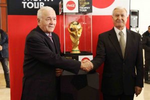 Легендарный трофей побывает в 50 странах, в том числе и в Кыргызстане. Данное турне уже является четвертым по счету и проходит при поддержке компании «Coca-Cola».Увидеть кубок любители футбола должны были в одном из отелей столицы, куда были приглашены многочисленные гости. Но, к сожалению, из-за погодных условий спецрейс не смог вовремя приземлиться в международном аэропорту «Манас» и самолету вновь пришлось вернуться в Алматы в ожидании улучшения погоды.