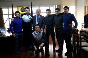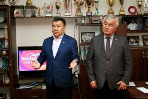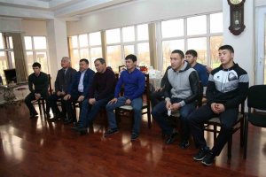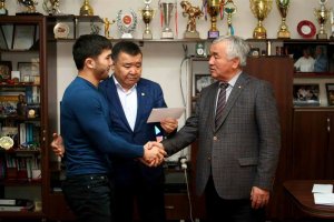 В свою очередь, ребята поблагодарили Аскара Мааткабыловича за поддержку и вручили ему золотой значок Объединенного Мира Борьбы Азии.