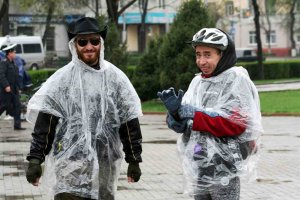 - Признаюсь честно, - сапоги это только часть моего наряда. В машине у меня лежит костюм химзащиты. Я хотел надеть его, но меня отговорили. Этот костюм водонепроницаемый. Но мне сказали не пугать людей. Так что мне и в сапогах очень удобно, в них и поеду, - сказал участник велопробега Камиль.