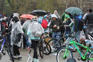 Ровно в 9.00 на традиционном месте сбора стали появляться велосипедисты. Спустя час на площади уже насчитывалось порядка 1300 участников. Конечно же, в солнечные дни пробеги собирали несколько тысяч бишкекчан, но и в такие сложные погодные условия велосипедисты с огромным желанием вышли на старт.