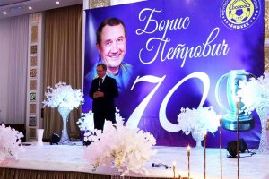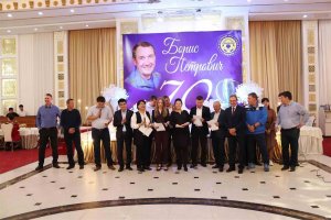 Директор детской футбольной школы «Дордой»Александр Агеев преподнес большую архивную фотографию. Бориса Петровича поздравляли целыми организациями: Федерация футбола КР, ФЛК, Ассоциация «Дордой», спортивный комплекс «Дордой». А завершили поздравительный марафон ветераны футбольного клуба «Дордой» и нынешние игроки команды во главе с Александром Крестининым. Стоит отметить, что коллектив Федерации футбола преподнес юбиляру песню.