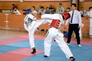 Затем под одобрительные аплодисменты зрителей состоялись показательные выступления сборной команды Академии таэквондо КР, продемонстрировавших эффектные приемы таэквондо, акробатические навыки, искусство разбивания предметов в прыжке. Украшением мероприятия стали выступления танцевальных групп, исполнивших национальные танцы.