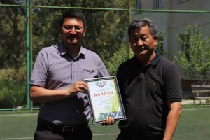 Поздравить победителей пришли ветераны футбола, представители Федерации футбола Кыргызстана и спонсоры.