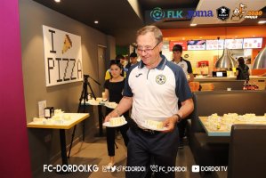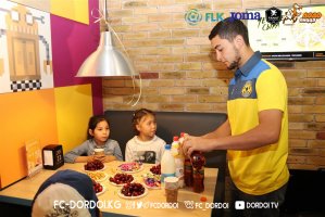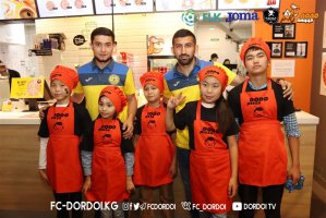 Ровно в 10:30 на клубном автобусе ребята в сопровождении Муролимжона Ахмедова и Амира Гурбани прибыли в пиццерию. В этот день наш «Дордой» принимал воспитанников из ОО «Центр защиты детей» и детского дома «Светлый путь». Для детей была заготовлена целая развлекательная программа.