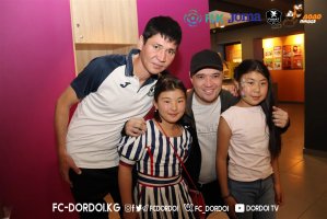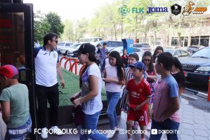 Перед отъездом детям были вручены подарки партнеров акции от Футбольной Лиги Кыргызстана, сети игровых клубов "Fanat.kg" и магазина спортивной одежды "Joma". После этого наш автобус отправился в кинотеатр «Октябрь», где ребят ждала вторая часть акции.