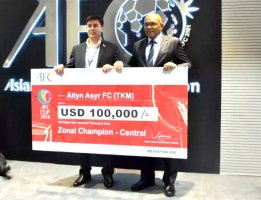 Соответствующие призы на состоявшейся в штаб-квартире Азиатской футбольной конфедерации в Куала-Лумпуре (Малайзия) церемонии награждения победителей зональных турниров Кубка АФК-2018 вручил команде Министерства связи Туркменистана генеральный секретарь континентальной футбольной организации Дато Виндзор Джон.