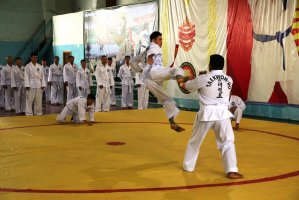 Две недели команды Сухопутных войск, Сил воздушной обороны, Национальной гвардии ВС, Государственного комитета по делам обороны и Государственной пограничной службыКР проходили подготовку инструкторовпо данному виду спорта. После курса все они будут распределены по войсковым частям ВС КР в целях обученияличного состава мастерству боевого искусства без оружия.