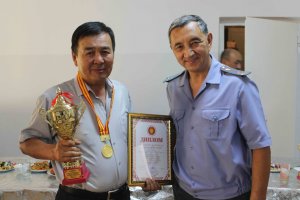 В соревнованиях приняли участие более 30 ветеранов, продолжающих службу в ОВД и находящихся на заслуженном отдыхе. Состязание прошло в дружеской обстановке, все участники были в прекрасном настроении. Победителем турнира с результатом 119 очков из 150 возможных чемпионом стал Мурат Абыкеев, Вторым стал Нургазы Айдаркулов. Его результат 71. С результатом 45 занял третье место Талант Айдыралиев.