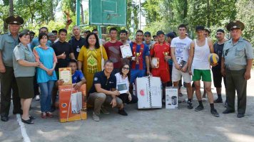 Параллельно, на отдельной площадке, сыграли сотрудники колонии. Было сформировано 4 команды: команда офицерского состава, две команды контролеров и команда начальников отрядов. Лучшей командой из сотрудников оказалась команда МНС «Покровка», на втором месте МНС «Ынтымак»,команда«Достук» из начальников отрядов заняла третье место, офицеры команды «Алга»- четвертые. Лучшим игроком стал прапорщик в/с Самат уулу Адилет.