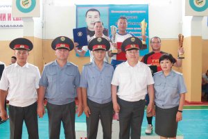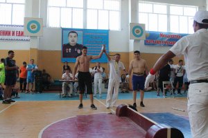 Далее все присутствующие почтили память своего коллеги минутой молчания. Чемпионат МВД республики по силовому троеборью включает в себя соревнования по гиревому спорту, таяк тартыш (мас - рестлинг) и аркан тартыш. В соревнованиях по гиревому спорту участники состязались в пяти весовых категориях, каждый из участников выполнял упражнения толчок и рывок с гири весом 24 кг в личном зачете: