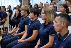 «Только лучшие из лучших могут быть достойны участия крупного спортивного состязания. Это очень большое достижение - получить путевку среди миллионов спортсменов на азиатском континенте. Вы достигли этого своим неустанным трудом и упорством. Надеемся и верим, что вы завоюете чемпионский титул и высоко поднимете знамя кыргызского государства, и ваша победа будет большой победой для всего народа Кыргызстана», - подчеркнул Сооронбай Жээнбеков.