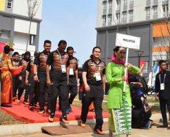 Традиционно флаг поднимали под гимн Кыргызстана. Кроме Кыргызстана на церемонии подняли флаги Ирака, Малайзии, Монголии, и Макао. После чего Юни Картика вручила представителям стран сувениры Азиатских игр. В свою очередь Ы.Мааткабылов подарил символ Третьих Всемирных игр кочевников.