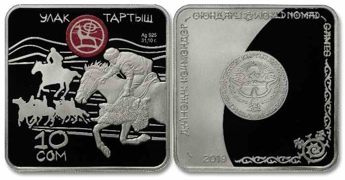 Коллекционная монета «Улак тартыш» серии «Всемирные игры кочевников» выпущена для возрождения и популяризации этнических видов спорта и посвящена III Всемирным играм кочевников 2018 года.
