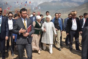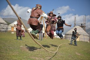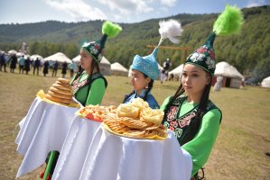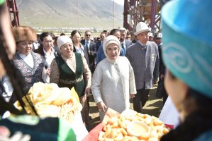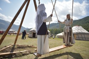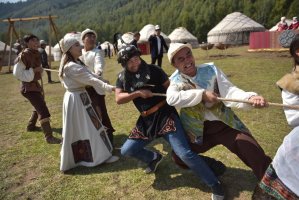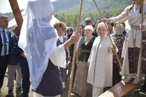 В рамках визита первым леди и мэру столицы Азизу Суракматову была продемонстрирована национальная традиция «Бала бешикке салуу». Также на территории этно-городка весь день проходят национальные игры: "аркан тартыш", "шакек салмай", «ак терек, көк терек» и другие.