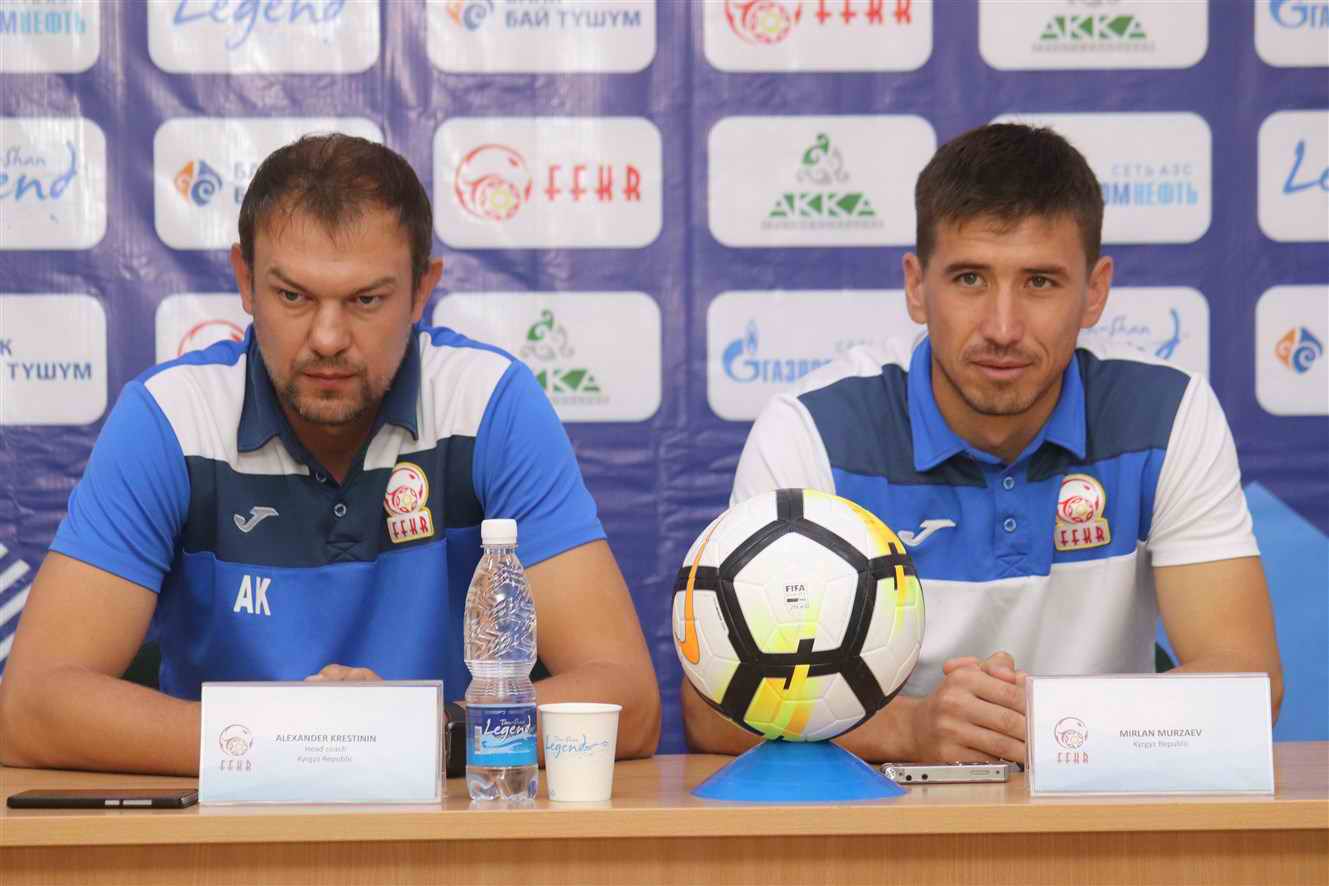 На вопросы журналистов ответили главный тренер сборной Кыргызстана Александр Крестинин и нападающий Мирлан Мурзаев.
