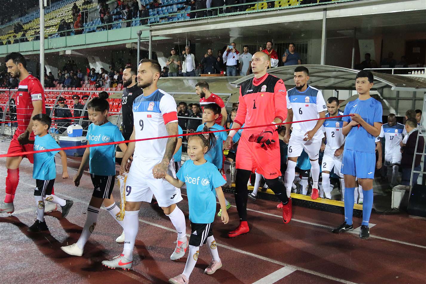 В отличие от матча с Палестиной, команду на поле с капитанской повязкой вывел Эдгар Бернхардт. Напомним, что наш прежний кэп - Мирлан Мурзаев - в матче с палестинцами получил травму. Кроме Мурзаева в запасе на этот раз остались Тамирлан Козубаев и Азиз Сыдыков.