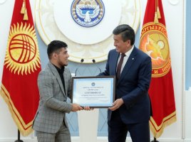 - Наши спортсмены вернулись в Кыргызстан, заняв призовые места. Благодаря вам Гимн Кыргызстана прозвучал на международной арене, гордо развевался флаг нашей страны. Впервые на таком сложном соревновании с сильными соперниками из 45 стран наша страна завоевала столько наград. Вашей победой гордятся все кыргызстанцы!, -отметил Сооронбай Жээнбеков, поздравил спортсменов с заслуженной наградой.