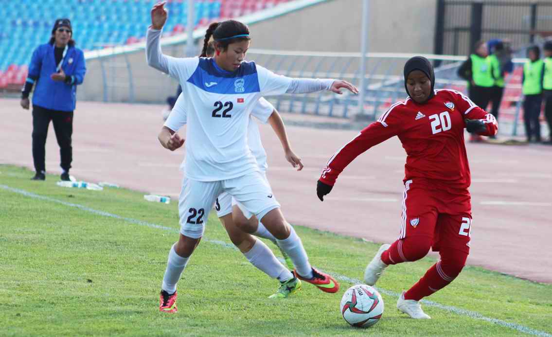 В матче между сборными Кыргызстанаи ОАЭ гости первыми забили гол на 59-й минуте. На 66-й кыргызстанка Виктория Далингер сравняла счет, а затем Ырысбек кызы Кенжебубу вывела отечественную команду вперед. В итоге, игра завершилась со счетом 2:1 в пользу кыргызстанок.
