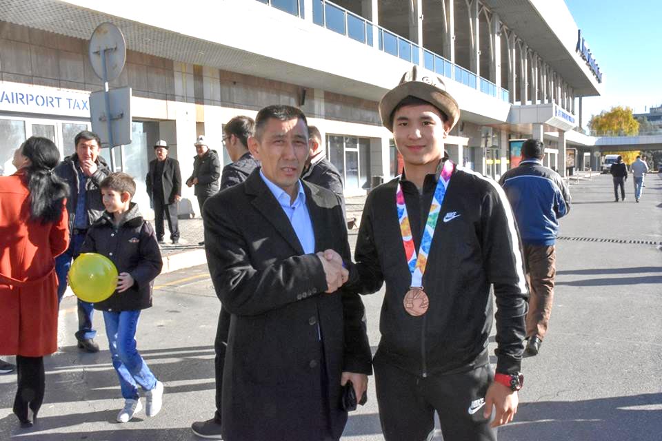 Юношескую сборную Кыргызстана встретили заместитель директора Государственного агентства по делам молодежи, физической культуры и спорта при Правительстве Кыргызской Республики Канатбек Арпачиев, глава Дирекции по олимпийским видам спорта Жоомарт Шамканов, а также родственники, друзья и болельщики.