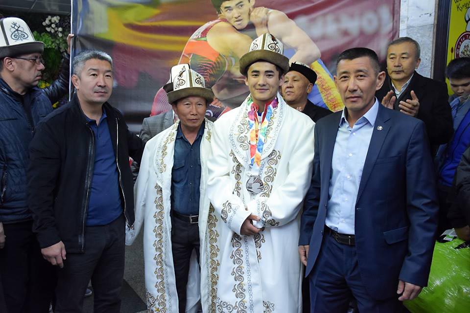 На встрече призерам по традиции надели калпак и чепкен. Канатбек Арпачиев поздравил спортсменов с завоеванными медалями и пожелали им удачи в дальнейших соревнованиях.