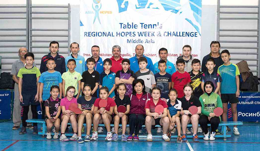 10-11 летние мальчики и девочки из Ирана, Казахстана, Кыргызстана, Туркменистана, Узбекистана с 5 по 9 января провели двухразовые тренировки под руководством эксперта ITTF Mr. Pin Nonsagate (Таиланд), а 10 января сыграли в региональном отборе для выявления наилучших из числа участников «Regional HopesWeek Middle Asia». Сильнейшие (два мальчика и две девочки) в течение года со своими наставниками за счет ITTF выступят в 12 престижных турнирах и в совместных международных сборах.