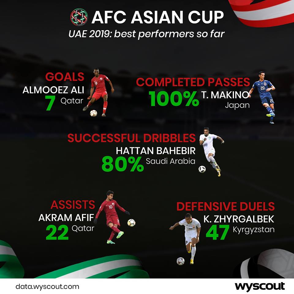 - Нападающий сборной Катара Алмуэз Али, который в трех матчах отметился семью забитыми голами;