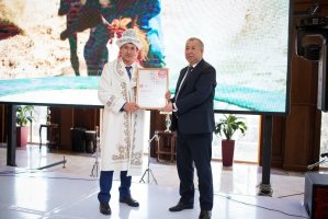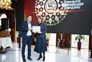 После этого Кубатбек Боронов и Алтынай Омурбекова наградили благодарственными письмами от имени Премьер-министра КР спонсоров и партнеров, оказавших содействие в проведении III ВИК, а также сотрудников Секретариата III ВИК.