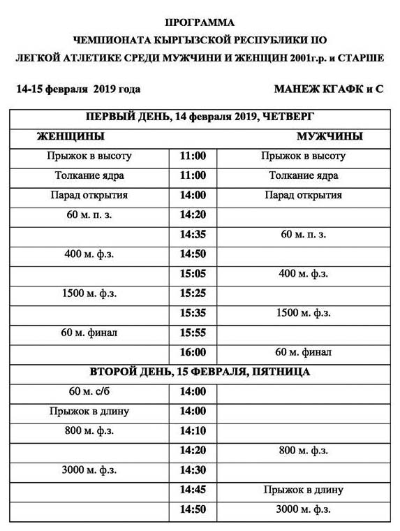 в столице Кыргызстана состоится чемпионат страны по легкой атлетике среди
