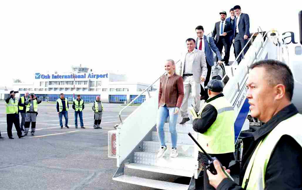 В Ош Шевченко отправилась вместе со своей мамой Еленой Шевченко и личным тренером Павлом Федотовым. В аэропорту Оша ее встретили мэр города Таалайбек Сарыбашов, полномочный представитель правительства в Ошской области Узарбек Жылкыбаев, начальник Управления физкультуры и спорта по Ошской области Арстан Жолдошев, а также поклонники ее спортивного таланта.