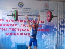 В весовой категории 55кг победу одержала Айпери Маматкулова (Орловка) с результатом: рывок-31 кг, толчок 37 кг в сумме 68 кг, второе место у Жолдош кызы Кымбат (Токмак) с результатом: рывок-30 кг,толчок 35 кг в сумме 65 кг.