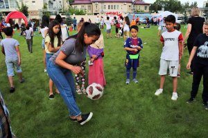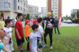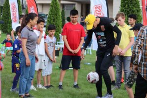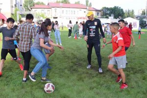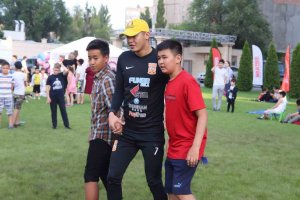 Казалось бы, какие еще могут публику ждать сюрпризы? Но самые юные участники знали, что скоро на зеленом газоне появится звезда кыргызского футбола, игрок сборной и ФК «Дордой» Азамат Байматов, который не только сфотографировался и побеседовал с поклонниками, но и преподал мастер-класс, сыграв с детьми в футбол.