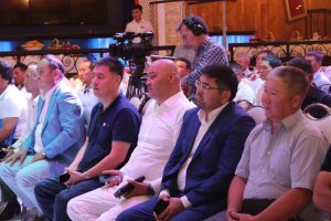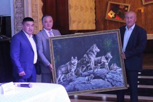 После завершения официальной части слово получили гости из регионов. Делегаты приехали не с пустыми руками и в знак благодарности вручили президенту федерации подарки и виде картины и различных сувениров.