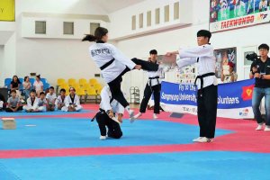 С поздравительной речью выступили директор Центра Образования Республики Корея в Бишкеке Ким Дэ Гван и руководитель волонтерской команды Квон О Гиль. Занятия проводились в школе N66 с 25 июня. С показательными выступлениями предстали волонтеры из Кореи. Им помогали их юные ученики.