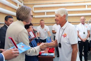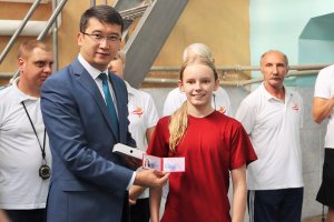 Высокая гостья выполнила почетную миссию, предоставленную президентом страны и зачитала поздравительное обращение президента. В сообщении говорились слова благодарности, что не смотря на трудности делается очень многое для популяризации плавание в стране. «Отрадно, что первую лицензию на Олимпийские игры завоевал пловец Денис Петрашов. Спортсменам я желаю развивать свое мастерство, - отмечается в сообщении.