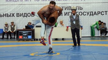 В рамках фестиваля первыми стартовали соревнования по национальной борьбе кыргыз курош в пяти весовых категориях где приняли участие спортсмены из Кыргызстана, Таджикистана, Туркменистана, Армении и Узбекистана.
