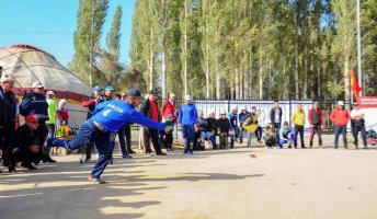 20 сентября на ипподроме имени Р. Алканова (г.Талас) прошли финальные соревнования по салбуурун. Об этом сообщает пресс-служба Госагентства. В программу Игр были включены буркут салуу (охота с беркутом), далба ойнотуу (охота с соколом), тайган жарыш (собачьи бега), жоо жаа атуу (стрельба из лука), атчан жаа атуу (верховая стрельба). В соревнованиях по салбуурун участвовали 52 спортсмена из регионов республики.