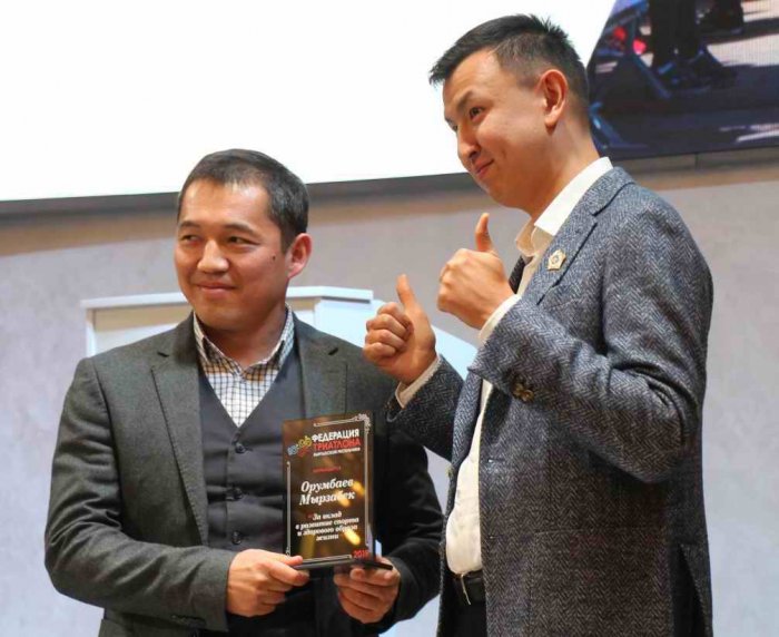 Были отмечены памятными подарками и благодарственными письмами партнеры и отличившиеся спортсмены. Также во время собрания были озвучены разрядные нормативы для спортсменов - любителей. Представители Государственного агентства по делам молодежи, физической культуры и спорта вручили президенту ФТКР Чынгызу Алканову удостоверение «Отличника физической культуры и спорта Кыргызской Республики».