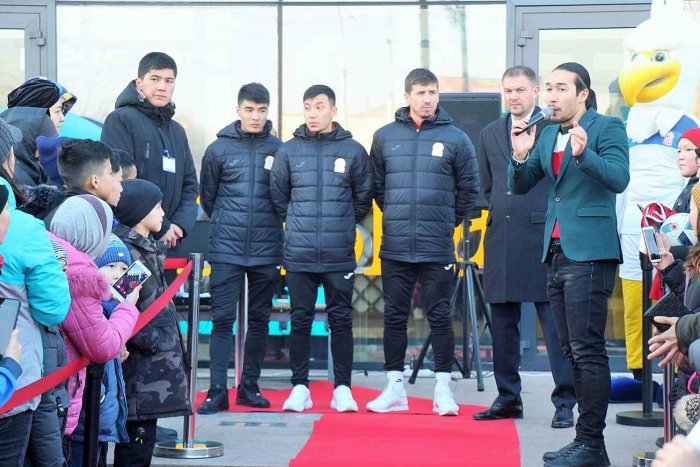 Болельщики с ликованием приветствовали на красной дорожке футболистов и символ сборной - «Ак-Шумкар». Каждый зритель старался снять на мобильный телефон это историческое событие. Игроки в сопровождении Александра Сергеевича прошлись по дорожке, поприветствовав всех и тожественно открыли звезду.