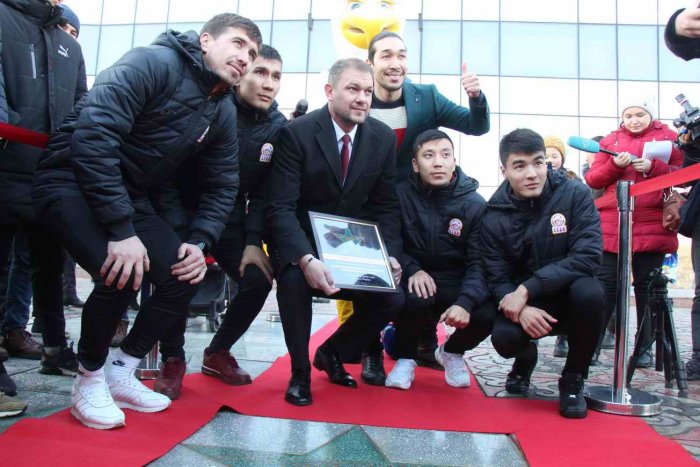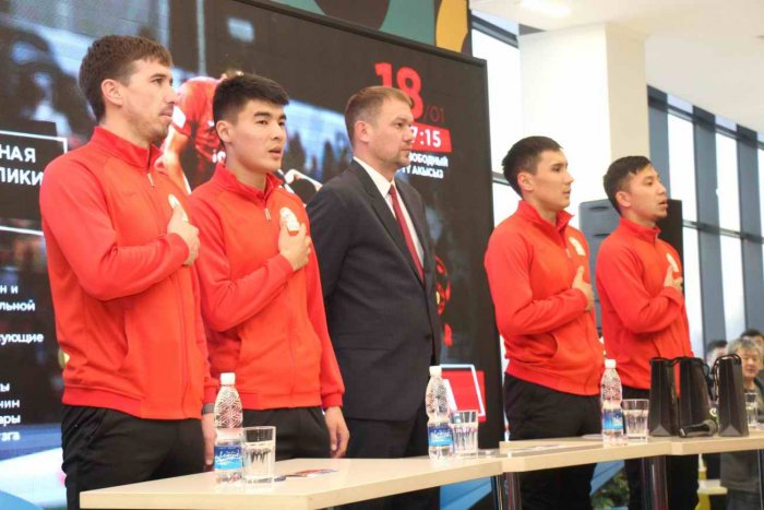 На торжественное мероприятие были приглашены главный тренер сборной Кыргызстана Александр Крестинин и игроки команды: Кайрат Жыргалбек уулу, Бекжан Сагынбаев, Фархат Мусабеков и Мирлан Мурзаев.