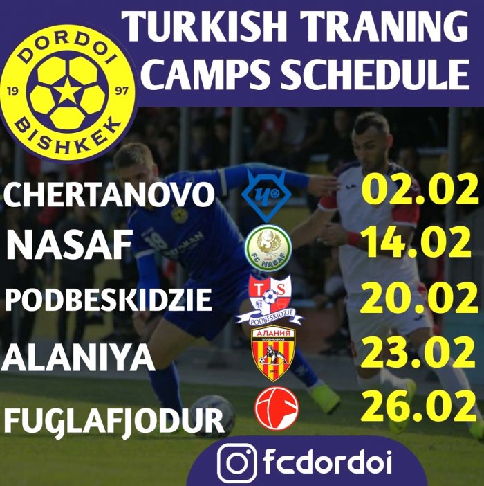 Чемпион Кыргызстана по футболу столичный «Дордой» - продолжает подготовку к новому сезону. 22 января команда прибыла в Анталию (Турция), где проведет два учебно-тренировочных сбора.