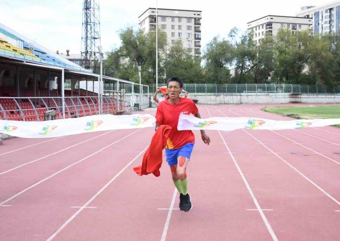 24 июня 45-летний бегун-любитель из Кыргызстана Оболбек Осмонбеков финишировал на Главной спортивной арене имени Долена Омурзакова в Бишкеке. Об этом сообщает sport.gov.kg.