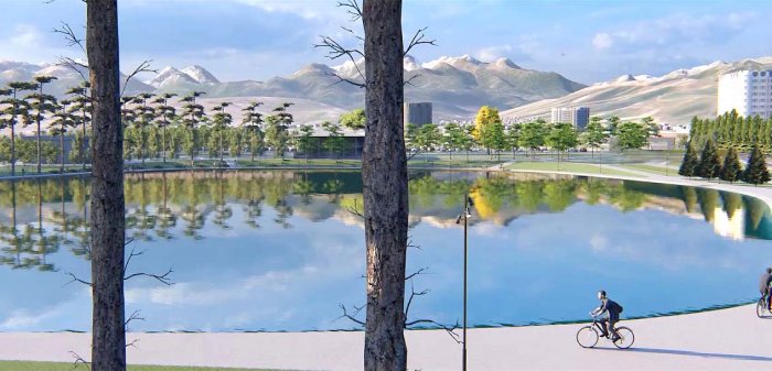 В новом общественном пространстве уже завершено строительство тротуаров и аллей, готова автопарковка на 300 машин, медпункт и санузлы, установлено 115 скамеек. Также с северной стороны парка сотрудники МП «Бишкекасфальтсервис» построили новую дорогу от пр. Ч. Айтматова до Токтоналиева.