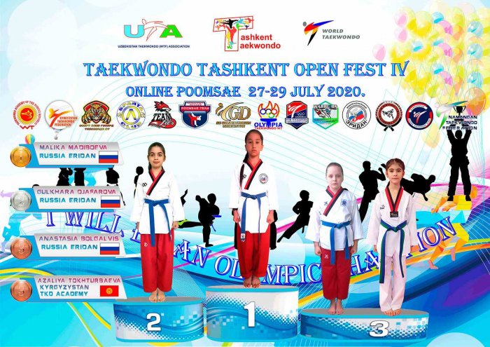 Воспитанники Академии таэквондо Кыргызстана успешно выступили на международном открытом онлайн-чемпионате по базовым комплексам Пумсе «TAEKWONDO TASHKENT OPEN FEST IV», который проводился Ассоциацией таэквондо Узбекистана с 27 по 29 июля.