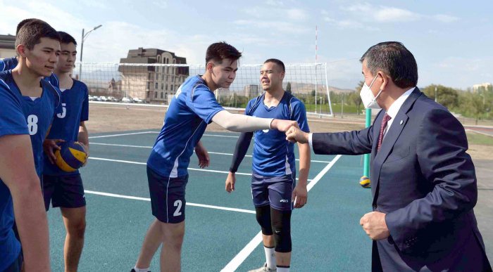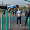Во время осмотра парка, который имеет несколько спортивных площадок, Президент стал свидетелем тренировочных игр в баскетбол, волейбол, занятий воркаутом.