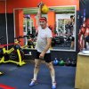 Свою площадку любезно предоставил клуб «Iron Club», где проводят тренировки атлеты. На помосте выступал пятикратный чемпион и рекордсмен мира среди ветеранов Александр Петров, который уже известен отечественной публике супермарафонами. На этот раз 62-летний атлет поднял гирю весом 16 килограмм, 1 тысячу 942 раза за два часа, что составило в сумме 31 тонну!