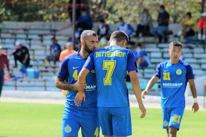 Затем Жапаров непостижимым образом отреагировал на удар головой в упор в исполнении Батырканова, а Гельдыев выбил мяч из пустых ворот. Хозяева отбивались всеми силами, однако именно они забили второй гол - на 34-й минуте Алыгулов оформил дубль - 2:1. И все же команды ушли на перерыв с ничейным счетом на табло - в концовке первого тайма Бекжан Сагынбаев его сравнял - 2:2.