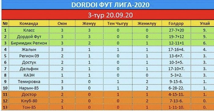 Напомним, что за первое место борются команды «Клуб-80», КАЭН, «Жалын», «Регион Биримдик», «Дордой Фут», «Нарын 85», «Темировка», «Достор», «Класс», «Достук» и другие.